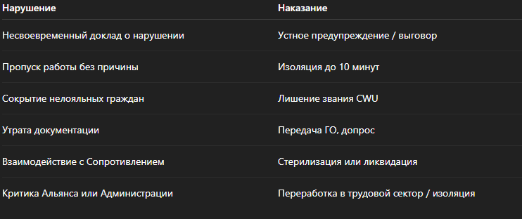 1.3. Членство в CWU является привилегией, предоставляемой гражданам, доказавшим свою лояльность, трудовую дисциплину и приверженность к идеалам Альянса.